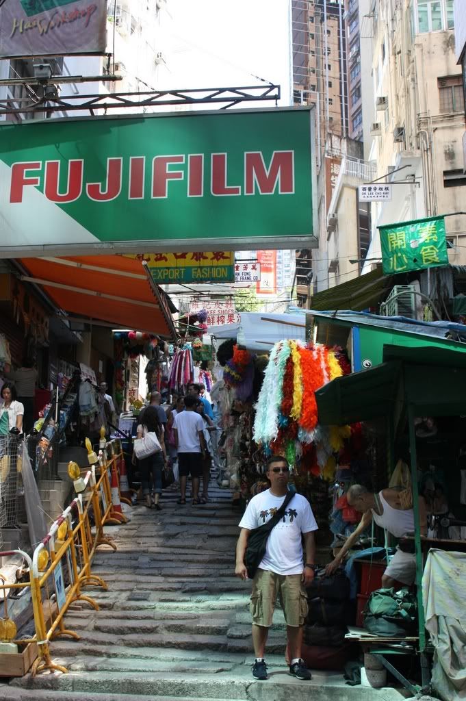 半山扶梯和我想的不同,我以為是抖直的一條大長扶梯,是漢神百貨一樓至二樓手扶梯的幾十倍,不過原來是順著地勢所建造的,是座建立在山上的空橋,上面設有手扶梯。結果手扶梯只有往上,往下的就是一般階梯,稍晚與Rey會合之後才有機會搭乘半山扶梯,也就是說今天的路程再晚上必須重複的再走一次。沒有什麼人蹲下來仰看旁邊的房子,有這樣想法的只有我們,說不定會看到重慶森林裡面的梁朝偉,只是香港人好像沒有這種閒情逸致,或者說他們可能不熟王家衛,也知道絕對沒有梁朝偉。