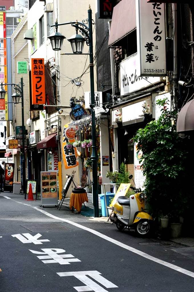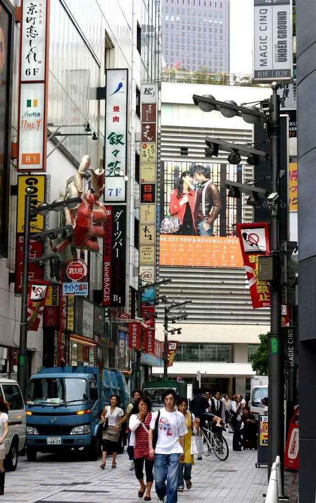 前往伊勢丹的路上,我們選擇小路走,由於時間還未到中午,因此很多店家都還在準備中,路上的行人也不多,所以我們老是東張西望,這幾天來我們最常做的事情就是東張西望了。提供中午與晚上餐點的店家,開始整理店面準備食材等待中午前來用餐的客人,招牌隱暗或者看不出販賣什麼的店,到現在還是大門深鎖,似乎告訴你當夜晚來臨時才是他們一天的開始;以海鮮為主要食材的店家,二樓門口上的巨大螃蟹模型似乎根本不需要招牌與文字就足以讓所有來自世界各地不同文化使用不同語言的客人,了解這家餐廳的內容。