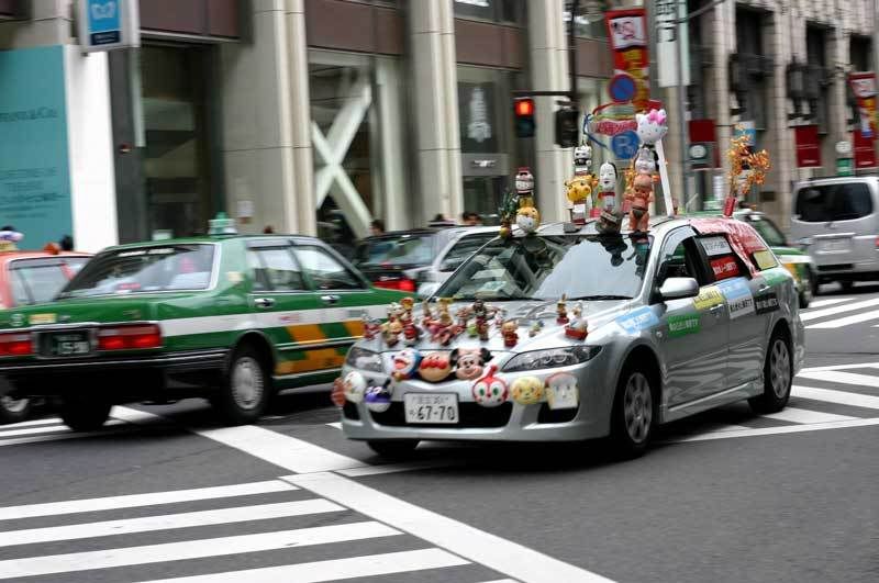 在新宿伊勢丹前呼嘯而過的花花轎車