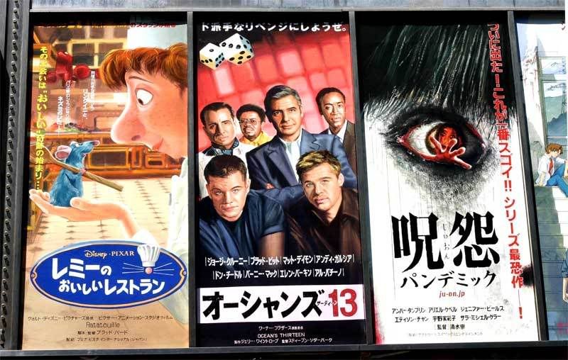 在池袋劇場旁就有一家戲院,電影海報居然都是用畫的,且上映時間比台灣晚很多