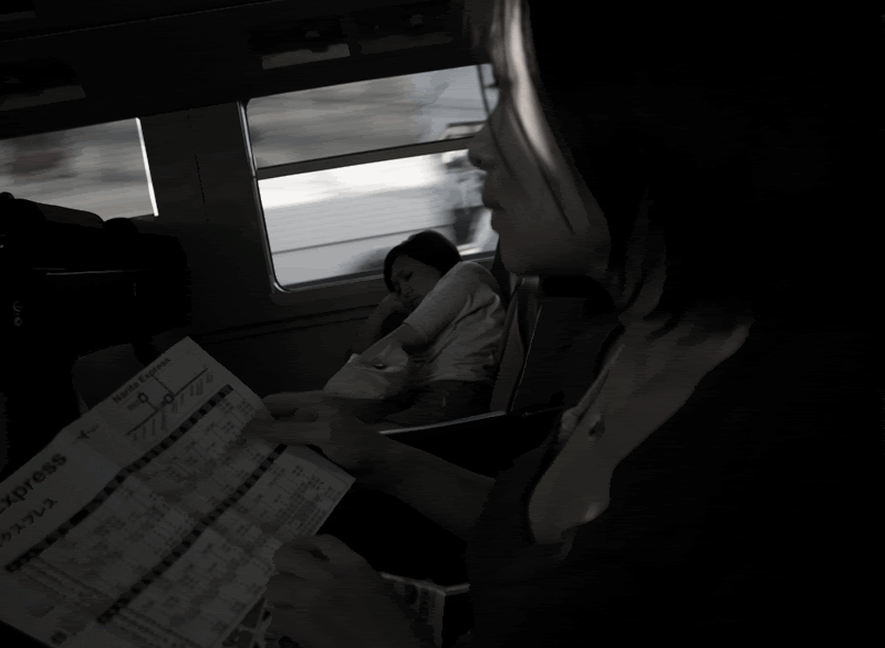 六日的疲勞突然頓時放鬆,在解決車票問題之後,所有的苦難都即將結束。永如小姐在不久突然沉沉的睡去,在他睡去的時間,太陽也漸漸地落下,從窗外透進來投射在我們身上的亮光面積越來越小,我們就這樣到達了成田機場,這個我們抵達日本領土的第一個地點。